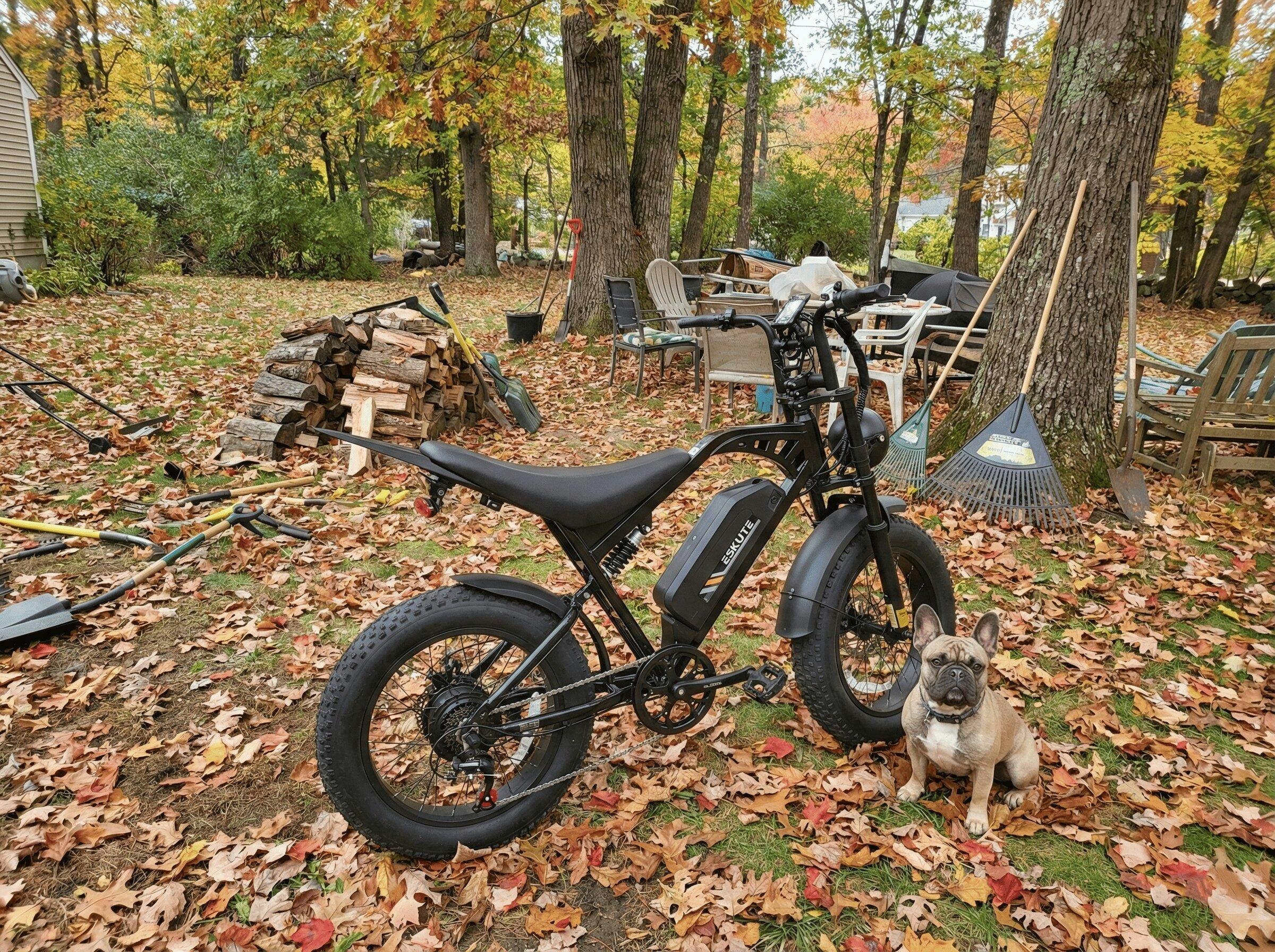 A:The Eskute V200 Ebike comes with a 1300W peak motor, 20×4.0" fat tires, a 48V 20.8Ah battery, up to 80 miles range, and can carry up to 360 lbs payload. It has dual disc brakes, full suspension, 7-speed transmission, and is Class 3.