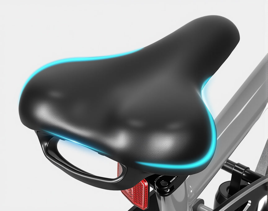 Designed for long rides, this plush seat features soft cushioning to minimize fatigue. The height is fully adjustable, allowing you to easily find the perfect riding posture for maximum comfort.